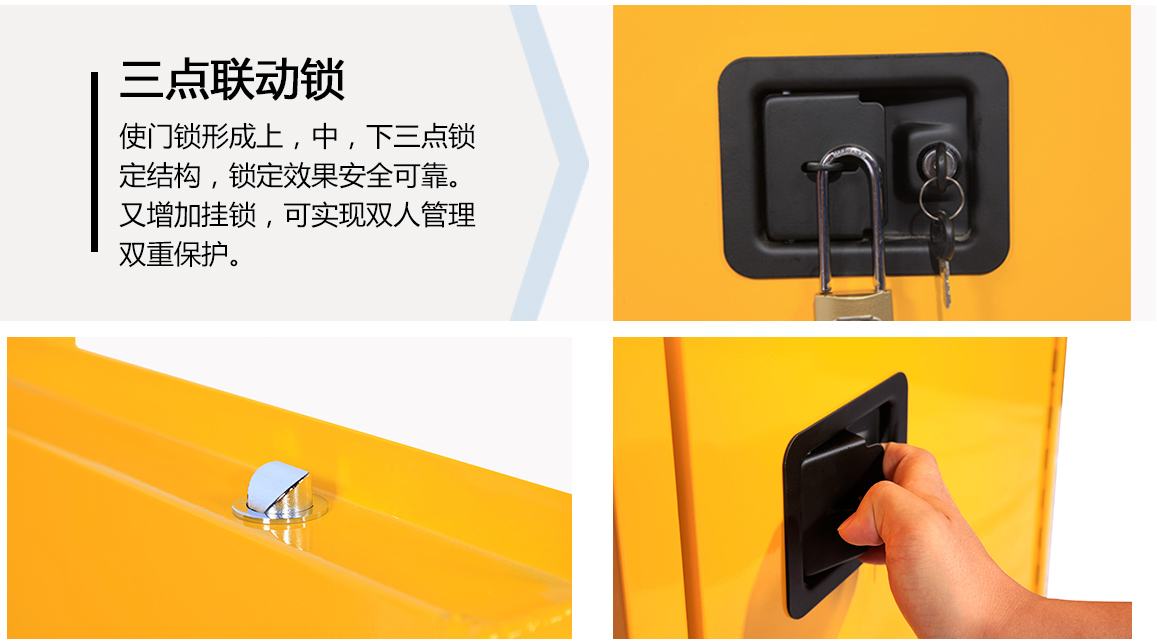 特征:配置气体自动检测报警装置.当被检测气体发生泄露,浓度达到预设定值时,装置自动报警.可选配联动通风系统将柜内气体排出户外.