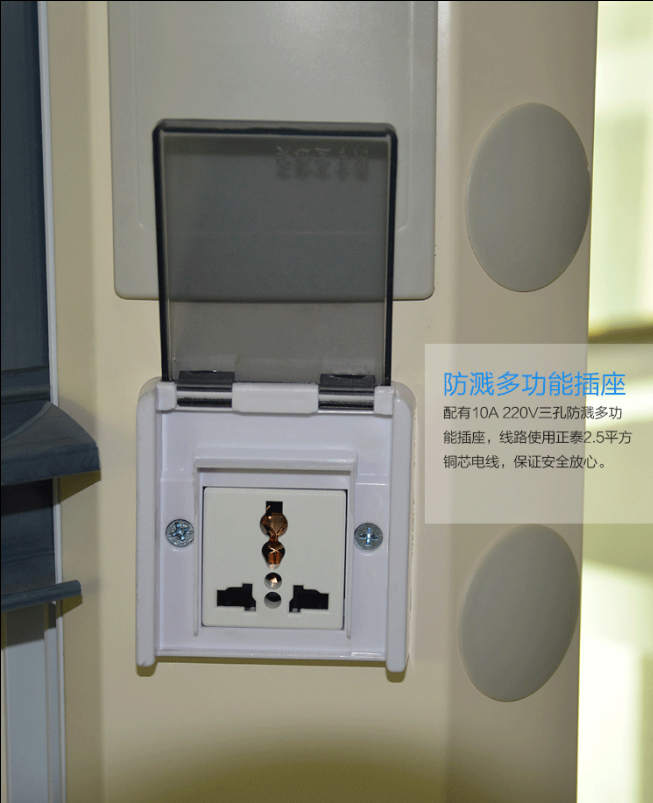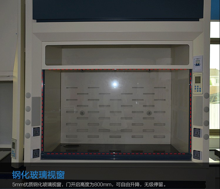 13.插座: 每台通风柜配置四只220V德力西插座,防尘、防溅带有自动闭合功能防护盖,适合实验室内各种仪器设备;
