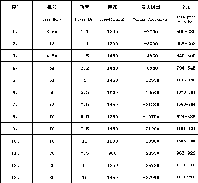 工作原理:当电机转动带动风叶轮旋转时,叶轮中叶片之间的气体跟着旋转,并在离心力的作用下甩出这些气体,气体流速增大,使气体在流动中吧动能转换为静压能,然后随着流体的增压,使静压能又转换为速度能,通过排气口排出气体,而在叶轮中间形成了一定的负压,由于入口是负压,使外界气体在大气压的作用下立即补入,在叶轮连续旋转作用下不断排出和补入气体,从而达到连续鼓风的目的。